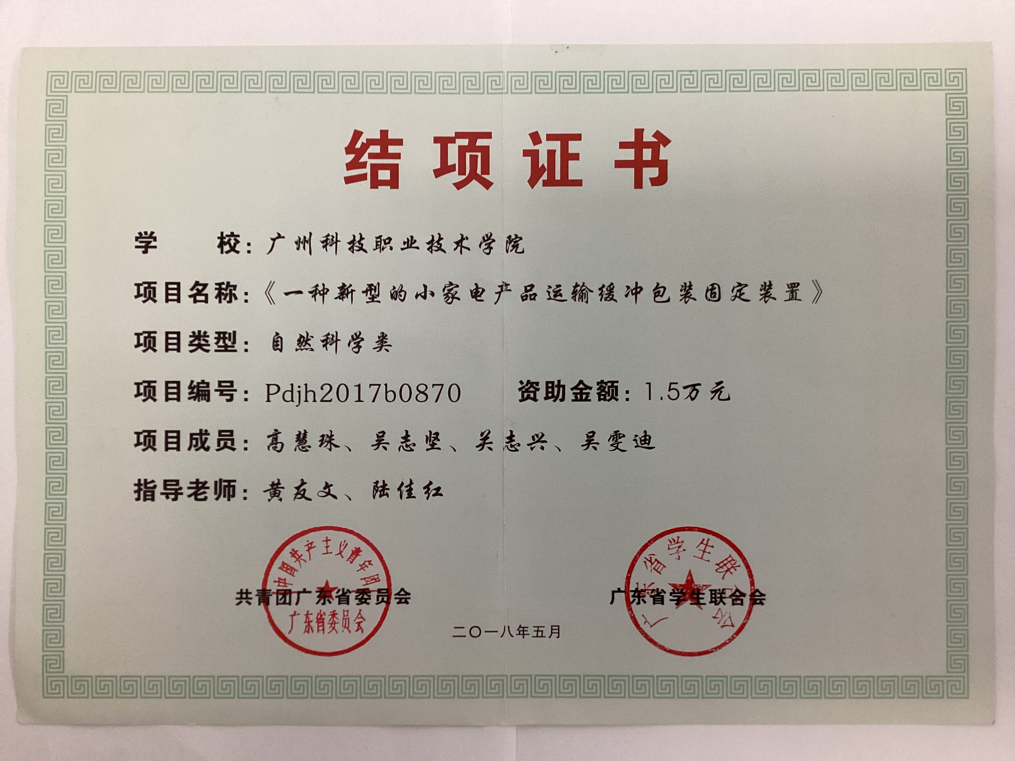 下一篇: 2018年省级大学生科创项目结题证书(攀登计划)立项证书