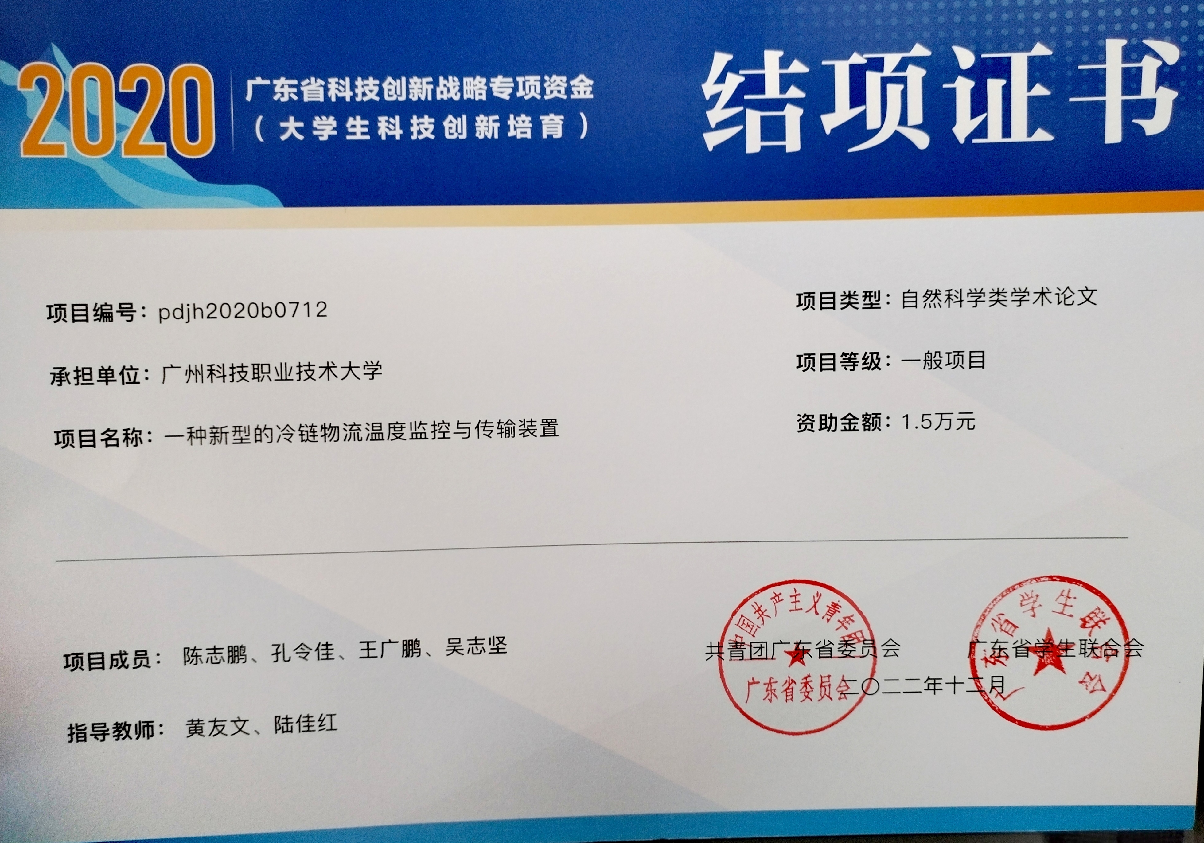 下一篇: 2018年省级大学生科创项目结题证书(攀登计划)