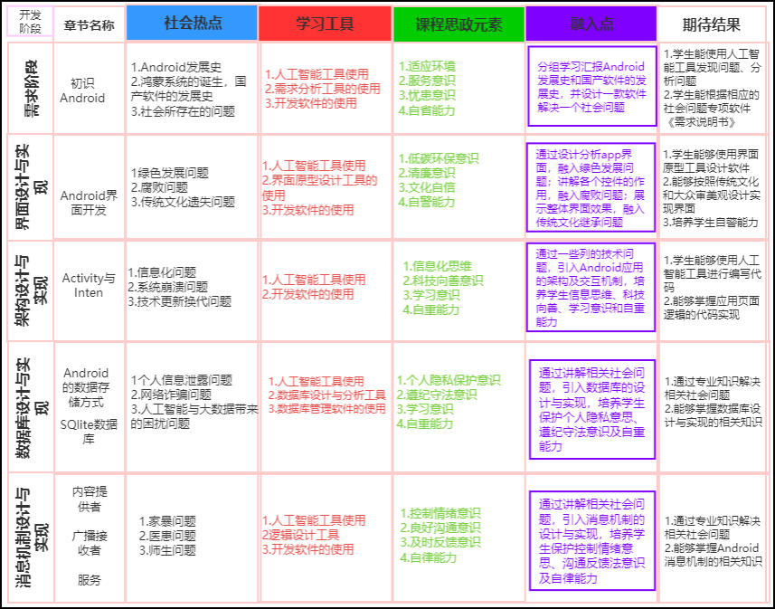 为了实现培养具有自省、自警、自重、自律的“四自”新时代信息技术高素质人才,将本次课程思政建设目标进行分解,具体如下:
