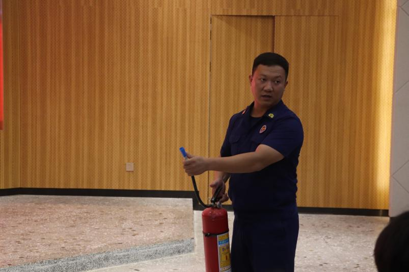 学校作为火灾发生高频单位,广大师生应在日常生活中应对此加以警惕和防范。冯班长介绍了生活中常见的火灾起因,诸如用火不慎、电气火灾、违章操作、蓄意放火、乱扔烟头、玩火、雷电等自然灾害等。他提醒同学们在生活中应避免有违反消防安全的不当行为,对可能引发火灾的行为应加以制止。然后,冯班长重点就区分火情、对应火情、如何使用灭火器等进行了讲解,并现场演示了灭火器的使用方法。