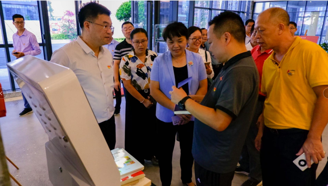 在滨海校区负责人张伟彪校助的带领下,麦丽敏副局长一行25人依次参观了食堂、宿舍区、教学楼、图书馆。张伟彪同志向大家了解滨海校区的整体办学条件、校园风貌、学校运行管理概况。在图书馆,麦丽敏副局长在党史学习教育图书专区、国防教育图书专区、建党100周年专题书画作品展区驻足观看,对滨海校区党史学习教育资料的整理情况、学习氛围营造等方面表示赞赏和充分肯定。
