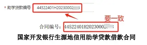 3. 学生在系统填写的助学贷款合同编号务必要与上传的合同附件上面的合同编号一致,否则将审核不通过。