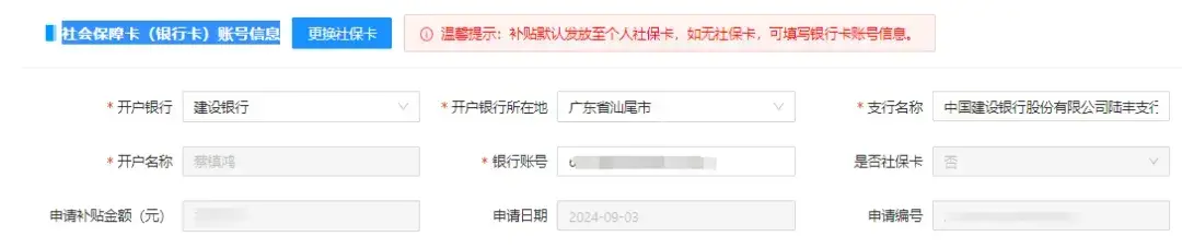 注:学生在申请时务必填写正确的社保卡开户支行名称,否则有可能会影响补贴发放。