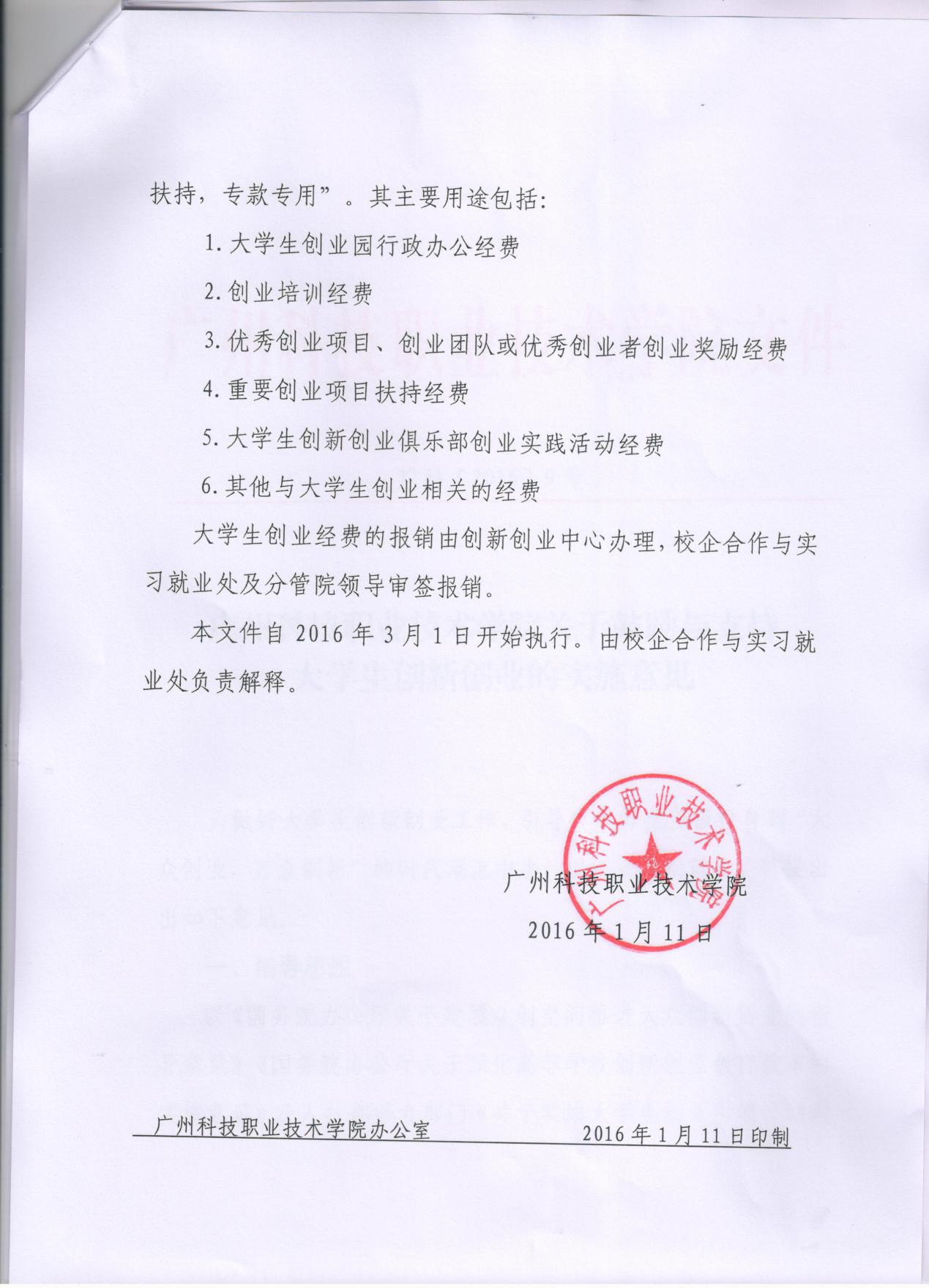 广州科技职业技术学院关于鼓励与支持大学生创新创业的实施意见