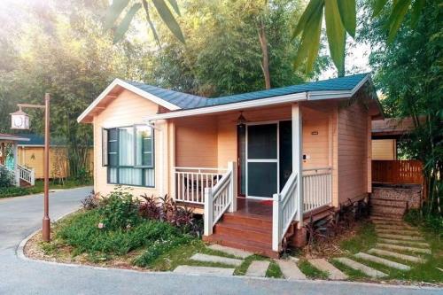 上午,旅游大巴载着教师满满的热情和期待浩浩荡荡地朝清远出发。经过两个小时车程,我们来到此行的第一个景点——九龙小镇。这里,峰、峦、岭绵延起伏,漫山的松树苍劲挺拔,生态环境十分宜人。在导游的指引下,大家先搭乘电瓶车前往松鼠别墅,感受松树房屋一体的“自然”文化。