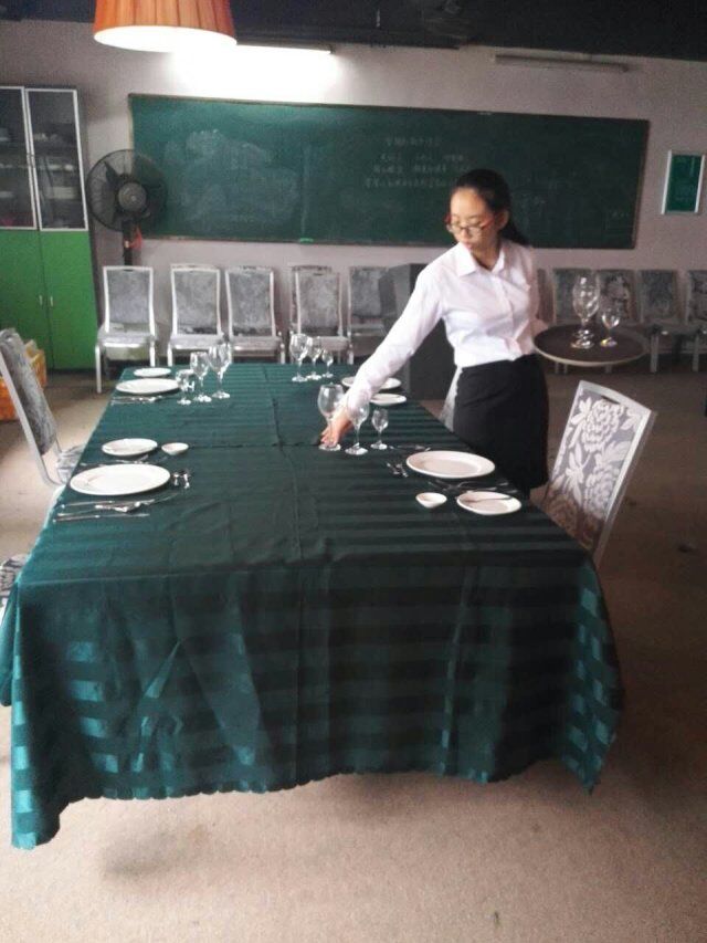 本次技能大赛主要对学生的现场操作进行评比,每场比赛包括仪容仪表和中餐宴会摆台两个主要环节,比赛现场气氛紧张而激烈,同学们经过一学期的《餐饮管理》课程的学习,在李三喜老师的精心指导下,展现出饱满的热情和娴熟的摆台操作。最后,16级酒店管理1班的蓝蔚霞,16级酒店管理2班的陈梓珊分别获得了中餐、西餐宴会摆台第一名的好成绩。