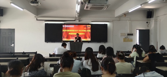 经管学院于明霞院长,带领带大家学习习总书记关于教育的重要论述,教育部等六部门《关于加强新时代高校教师队伍建设改革的指导意见》、《关于加强和改进新时代师德师风建设的意见》及《新时代教师职业行为十项准则》等文件精神。于院长督促经管学院全体教师尤其是青年教师应珍惜时光、把握机会,不断进修、交流,提升自身的专业素质能力,服务教学工作。经管学院将根据学院的实际情况,不断探索教师聘用、管理及考评制度,激发教师的创新活力。其次,我院会通过定期开展师德师风宣传学习等专题活动,不断提升我院教师的思想政治素质和师德素养。最后,于院长强调教师应为人师表、行为世范,做学生的榜样,行走的思政。