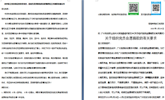 图1 《关于教工党员响应党中央号召,自愿为支持新冠肺炎疫情防控工作捐款的倡议书》