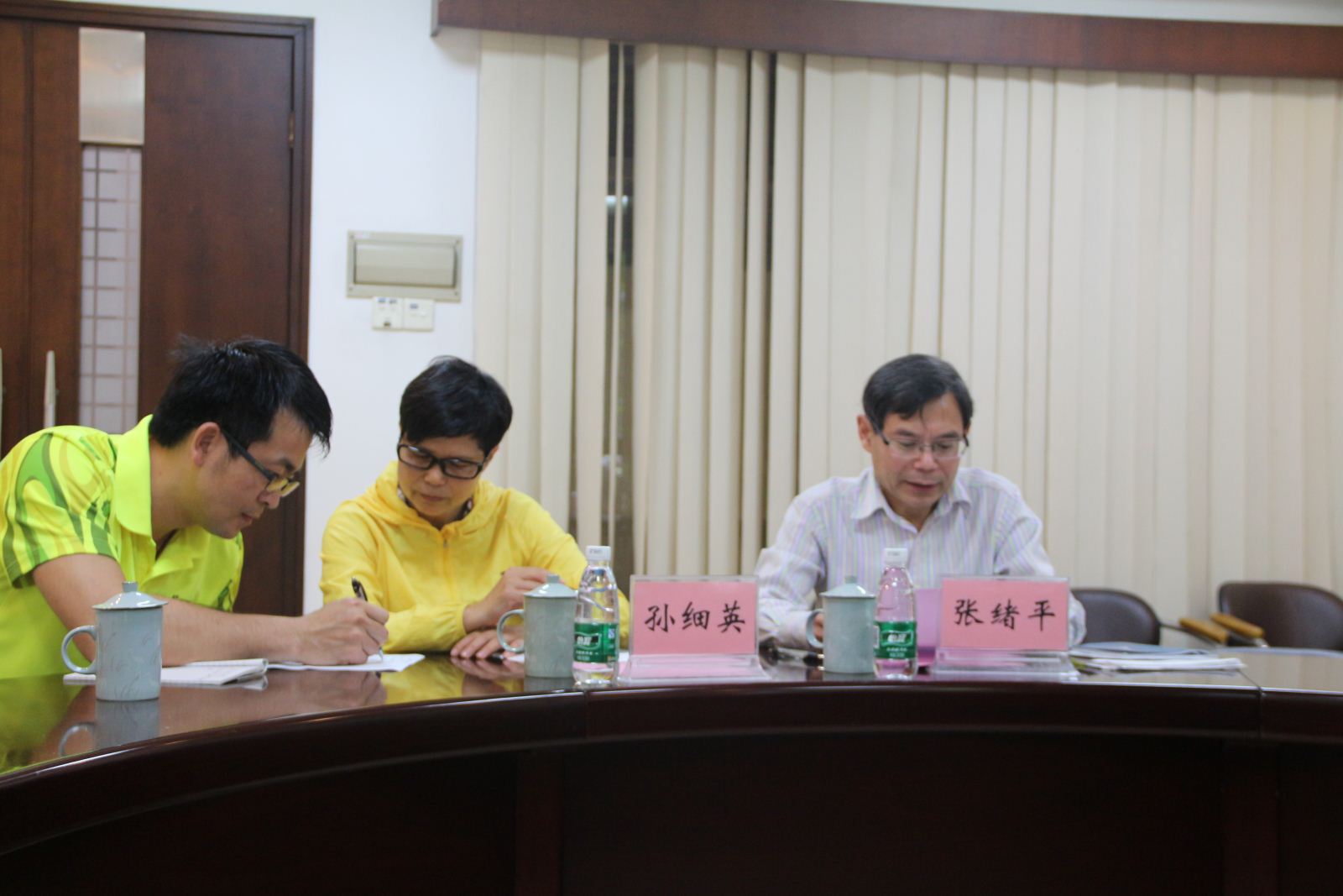 图为:广东白云学院基础部张绪平主任介绍相关情况