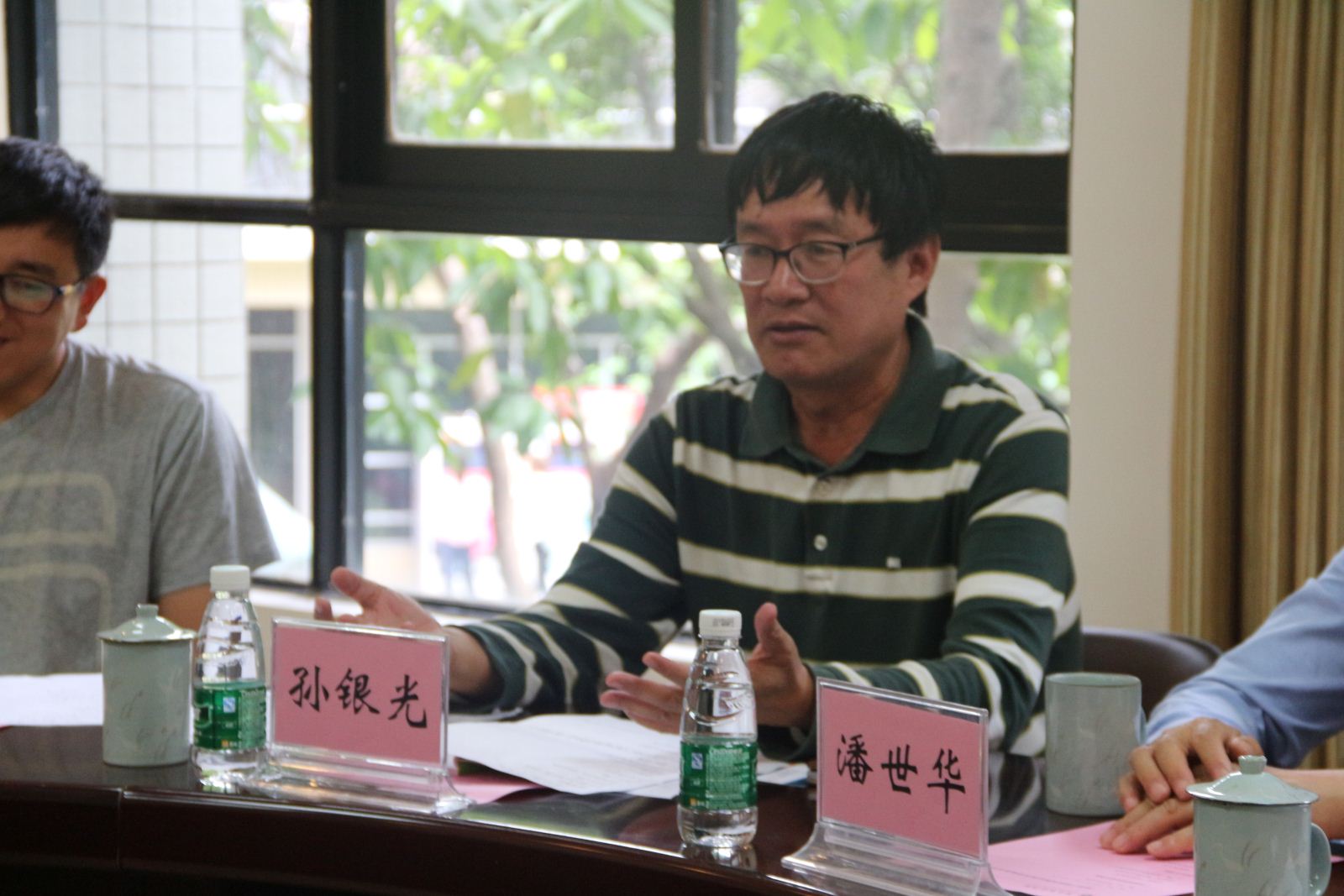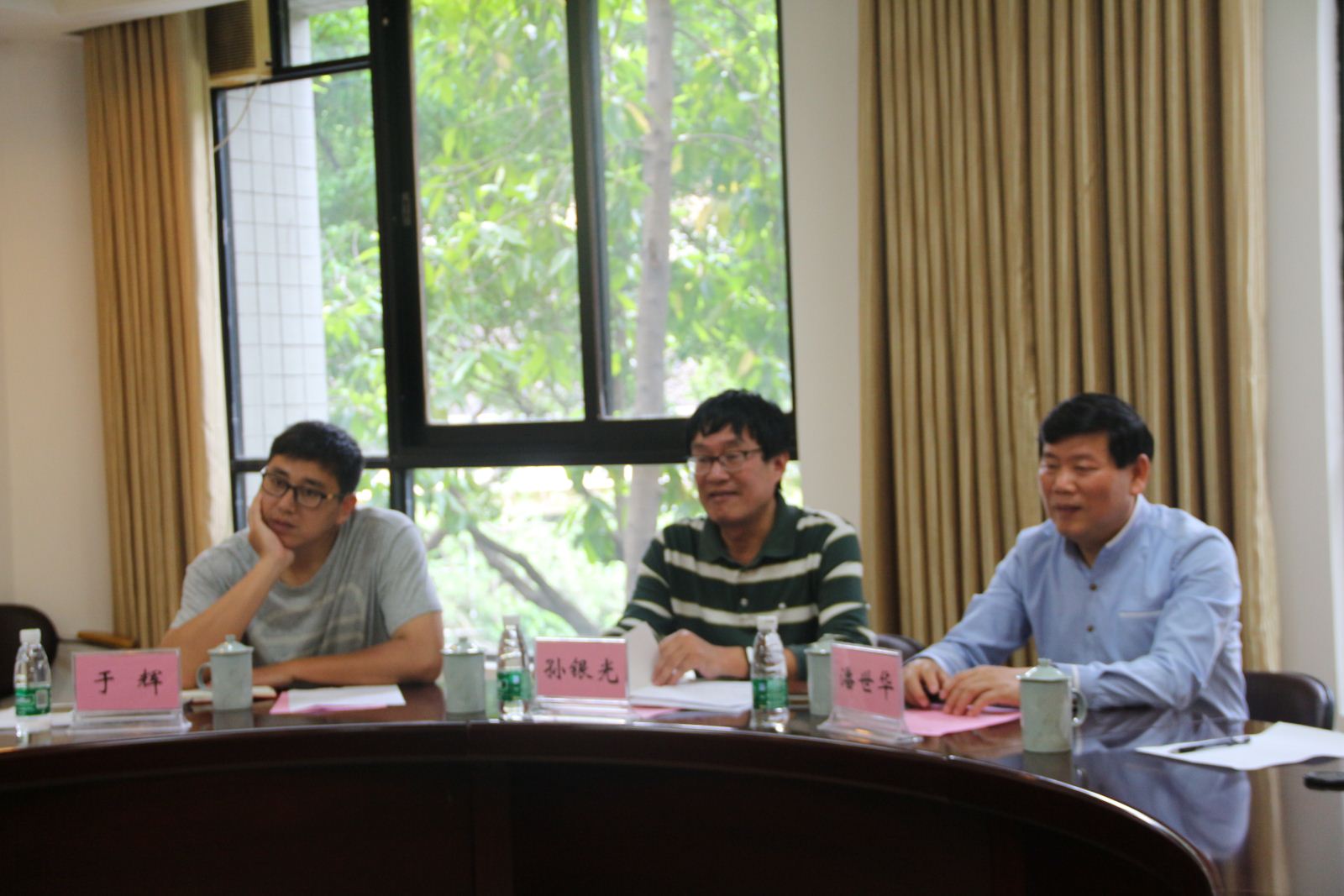 图为:我校基础部孙银光主任为广东白云学院介绍相关情况