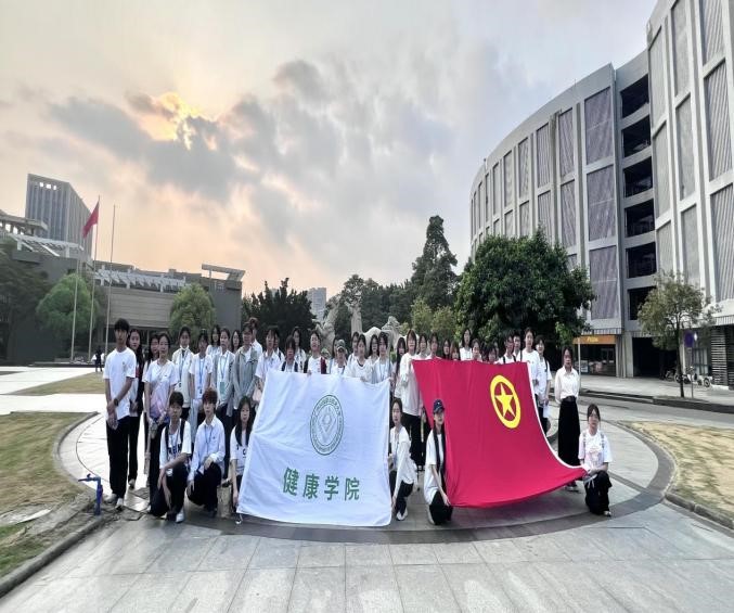 这岭南英雄树的图腾,此刻既是1841年三元里烽火的见证,亦化作健康学院团委成员们白衣上的徽记,在清明时节的细雨中完成了一场跨越世纪的致意。