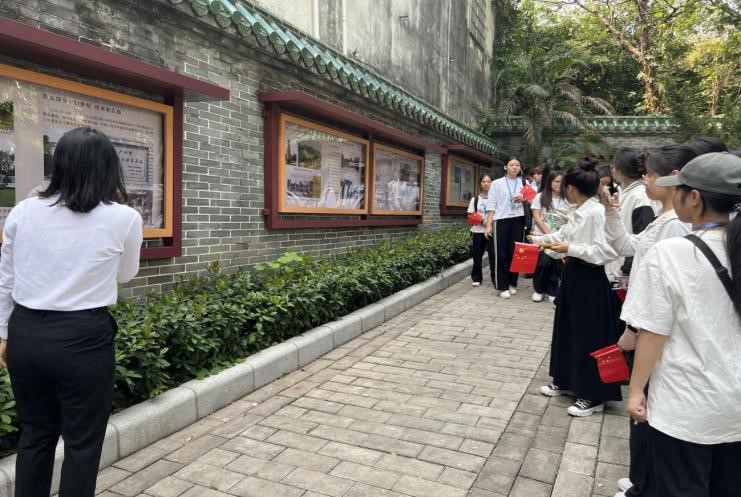 讲解员为大家讲解完后,各位团学的小伙伴便开始了自由参观。沿着蜿蜒的小路前行,路旁的宣传栏展示着三元里人民抗英的珍贵历史图片和文字资料,生动再现了那段波澜壮阔的历史。继续漫步,看到园内的树木郁郁葱葱,微风拂过,树叶沙沙作响,仿佛在诉说着当年抗英的故事。
