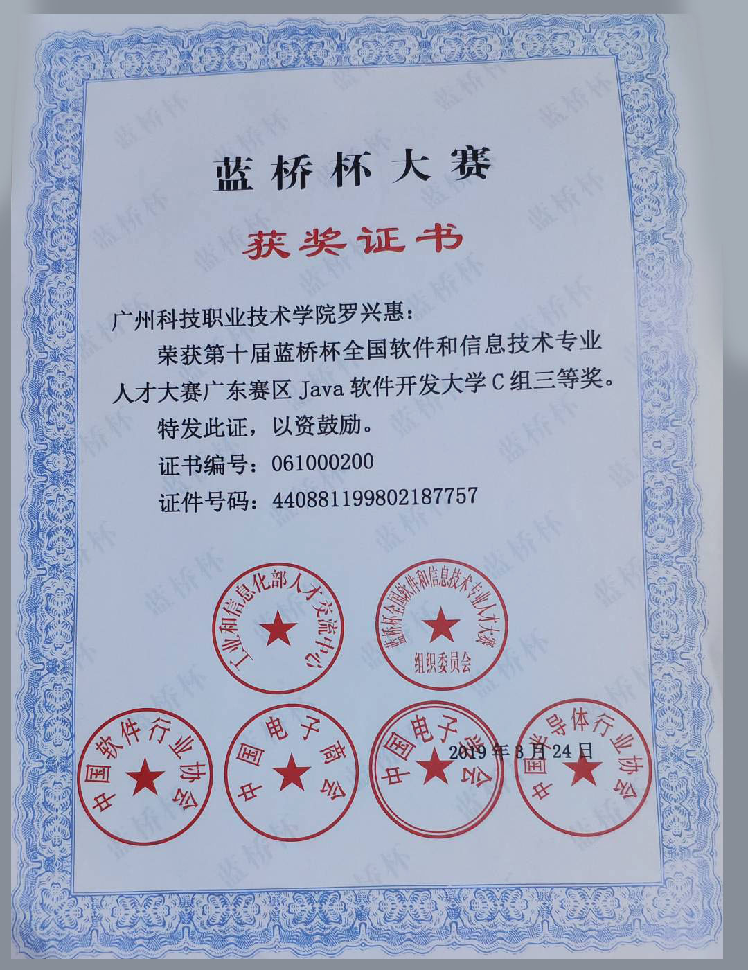 第十届蓝桥杯全国软件和信息技术专业人才大赛广东赛区Java软件开发大学C组三等奖
