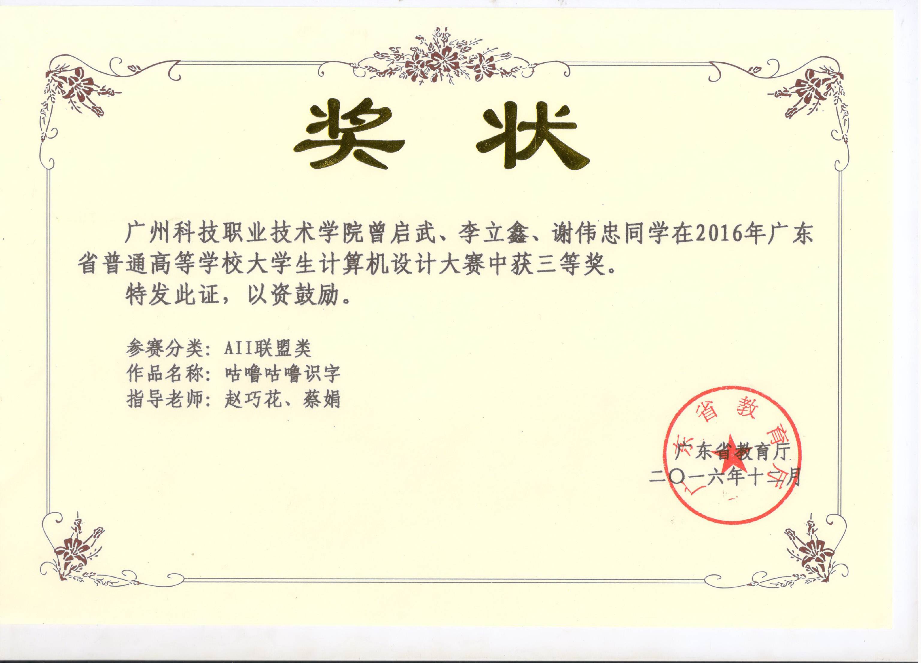 2016年广东普通高等学校大学生计算机设计大赛三等奖