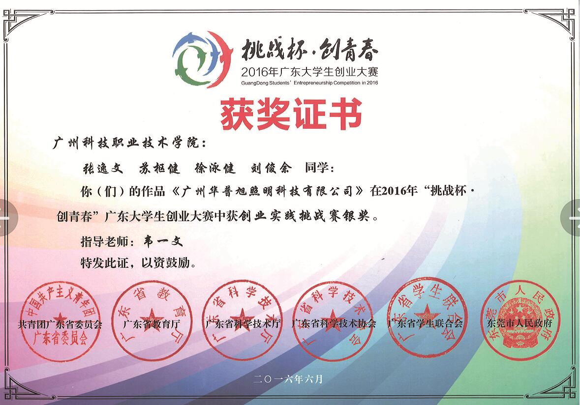 2016年“挑战杯.创青春”广东省大学生创业大赛创业实践挑战赛银奖