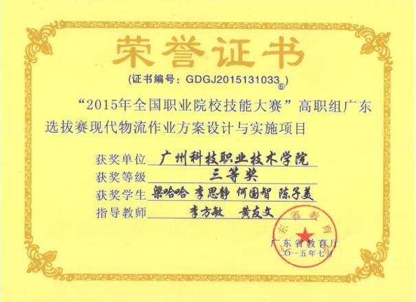 2015年全国职业院校技能大赛高职组广东选拔赛三等奖