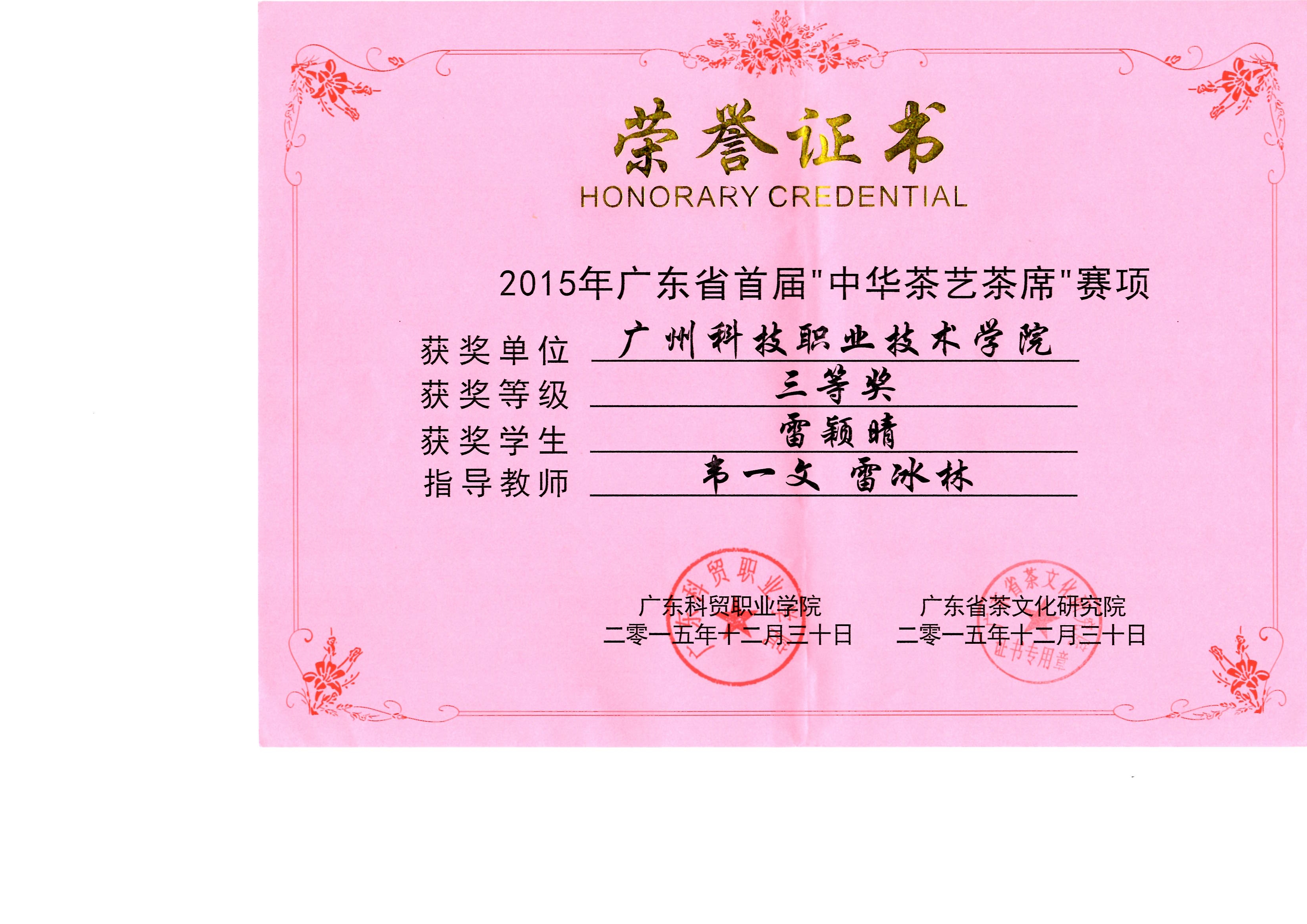 2015年广东省首届“中华茶艺茶席”赛项三等奖
