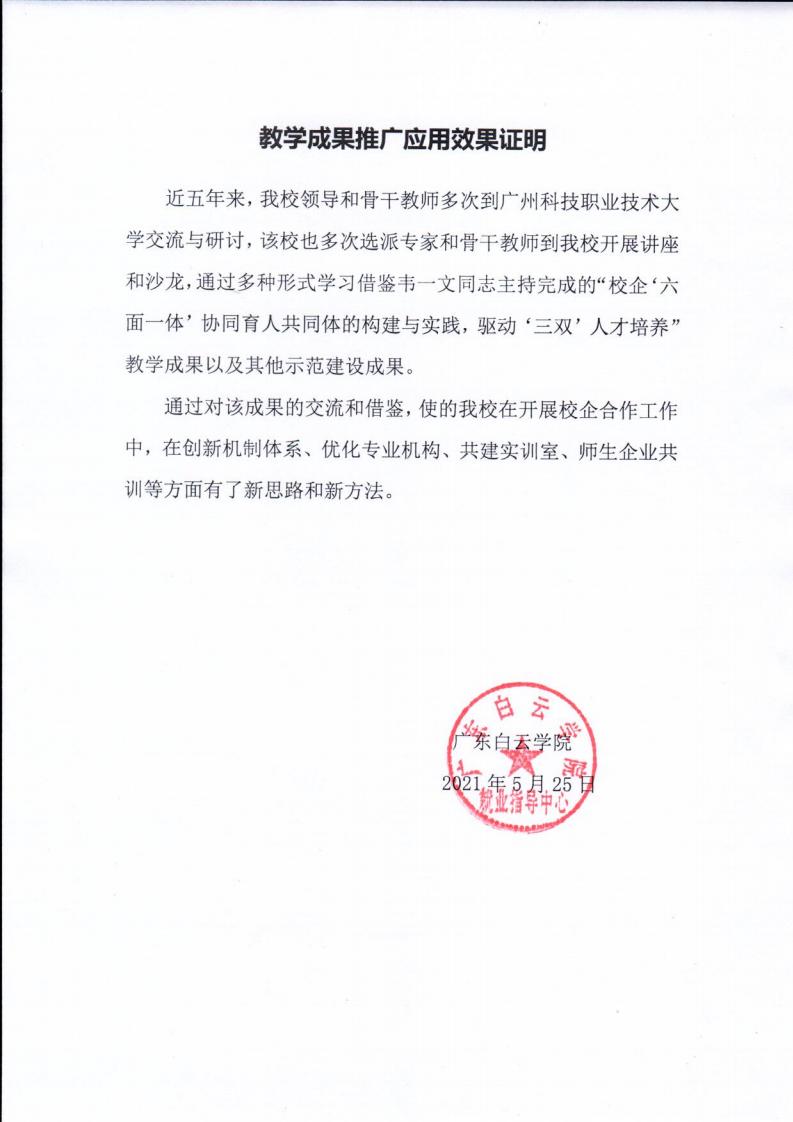 广东白云学院应用效果证明
