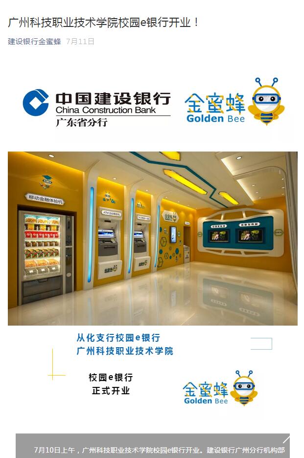 【建设银行金蜜蜂】广州科技职业技术学院校园e银行开业!