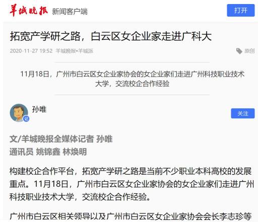 【羊城晚报】拓宽产学研之路,白云区女企业家走进广科大