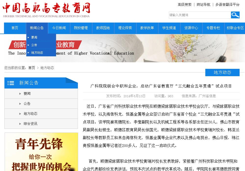 【中国高职高专教育网】广科院院联合中职和企业,启动广东省教育厅“三元融合五年贯通”试点项目
