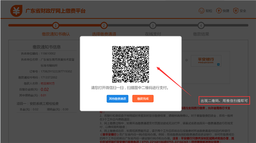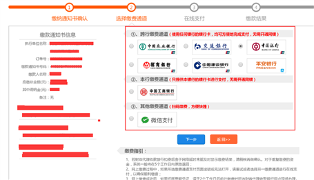 选择好缴费通道,点击下一步进入下一个缴费页面(以微信支付为例,下同):