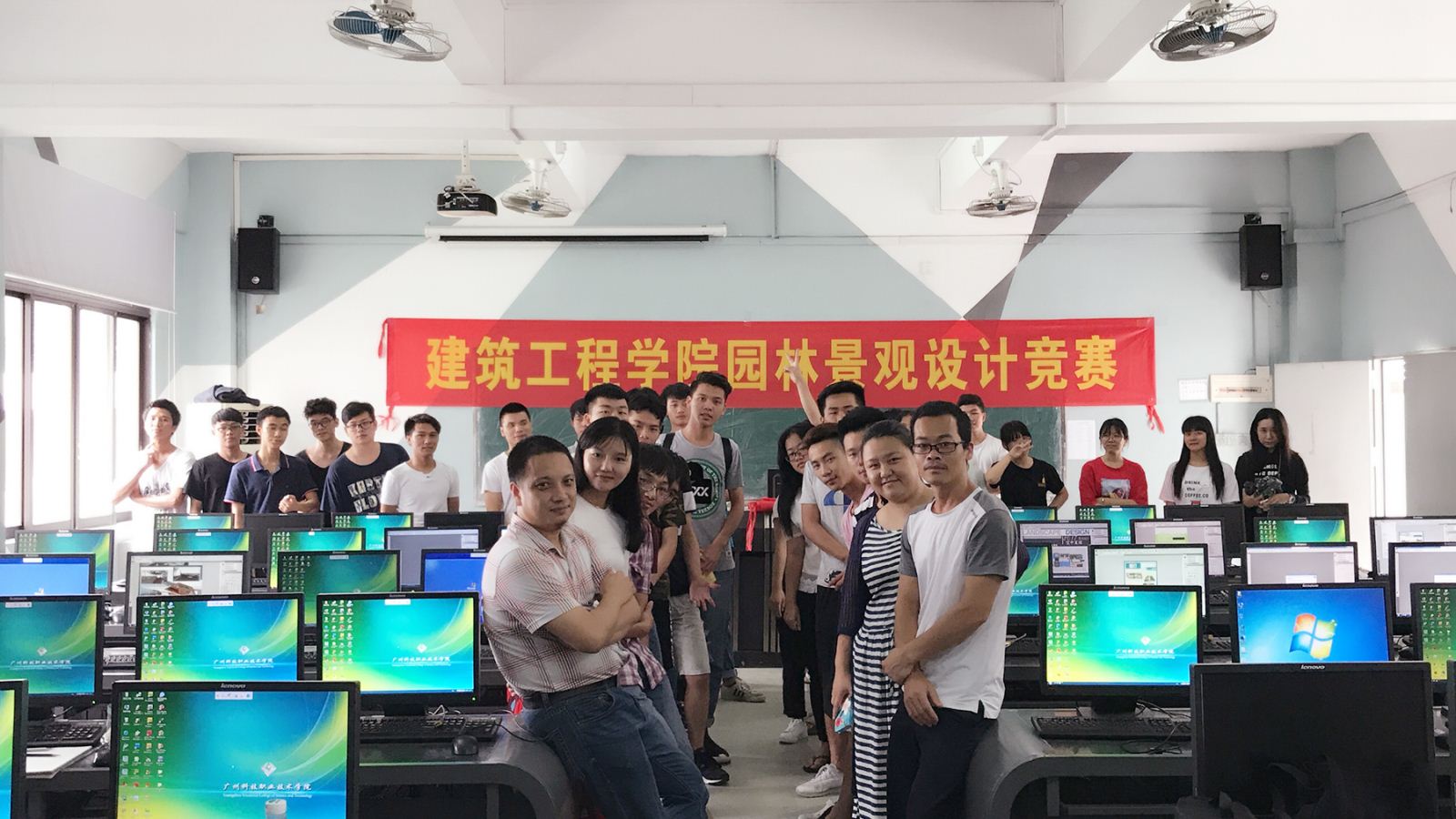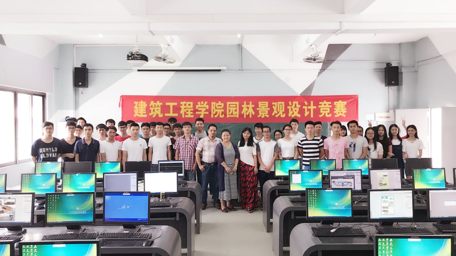2017年6月14日下午2点整,建工学院建筑装饰与设计师生在6302机房举行了建筑工程园林景观设计技能竞赛。本届比赛共有来自15级和16级建筑装饰技术专业和建筑设计专业的50多名同学参赛。建筑装饰与设计教研室教师--林剑锋、刘莹、赵星、梁进宇等老师担任评委。