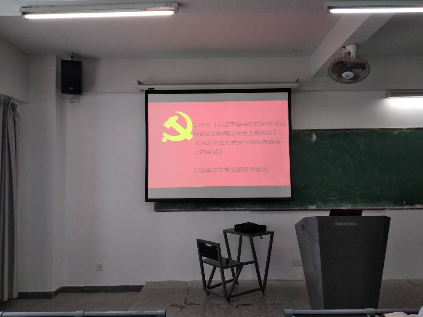 2018年5月16日下午2:00,建筑工程学院党总支在2213教室开展学习“习近平在纪念马克思诞辰200周年的讲话”精神。建工学院教师党支部和学生党支部都参加了这次会议。会议由学生党支部书记徐杏蕊主持,参会人员有:教师党支部的王利莉、王小爱、钟芬芳、张艳敏,王伊立,潘一璞,以及学生党支部的学生党员。