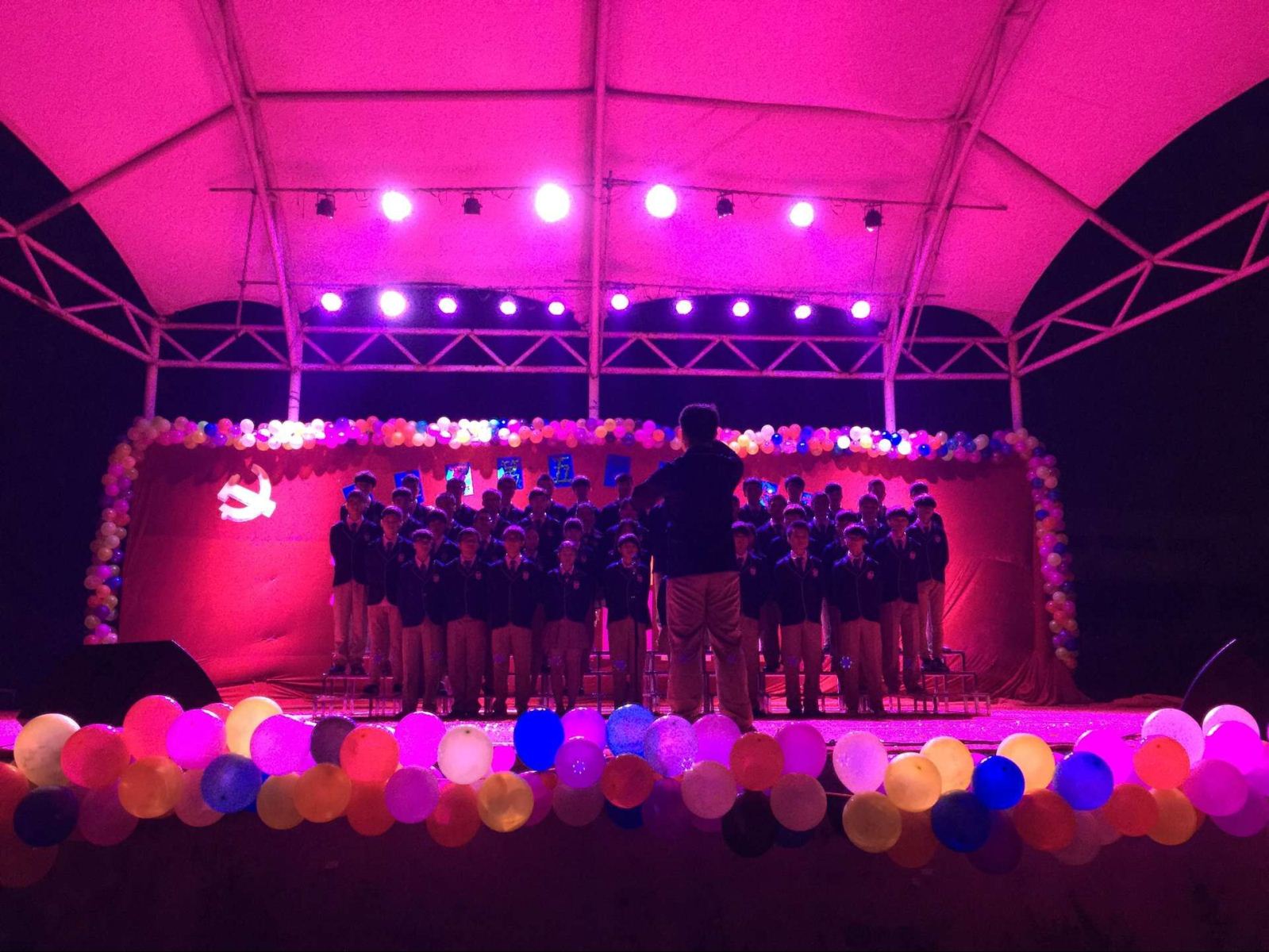 2015年11月12日晚7点,由建筑工程系举办的第五届“建立梦想,筑造辉煌”红歌大合唱比赛在骏马广场成功举行。出席本次晚会的嘉宾分别是:学生处王忠处长、系主任杨锐教授、系党支部书记周子乙书记、王莉莉副主任、各系党支部书记以及系部部分教师。本次活动主要由建工系党小组主办,团总支协办。为了比赛更加公平、公正,系部特邀请了歌唱专业出身的杜威老师、李艺茵老师做评委,同时也邀请了刘静静老师、王润萍书记以及外系团总支副书记等成员做评委。我系十分重视本次红歌合唱大赛,杨锐主任在比赛进行的中途亲自为大家献上经典红歌《太阳最红,毛主席最亲》。晚会现场气氛相当活跃,各班级合唱歌曲也十分精彩。晚会持续了两个小时,在李艺茵老师和杜威老师合唱经典歌曲《为了谁》中落下帷幕。一分耕耘一分收获,最激动人心的环节是主持人公布一二三等奖获得班级,他们分别是:15工程造价5班演唱的歌曲《中国人》获得一等奖,15工程造价3班演唱的歌曲《国家》获得了二等奖,15工程造价2班演唱的歌曲《五星红旗》获得了三等奖。根据部分班级演唱的综合水平,系部还为整体表现优秀的班级颁发了最佳精神奖、最佳组织奖等鼓励奖。合唱比赛的最终目的不是为了争取名次和奖项。本次活动的举办主要是通过参加红歌合唱比赛,让各班级更加明白了团结一致的力量,以及积极向上,拼搏进取的精神和认真对待每一件事的重要性。同时,通过唱响红歌,学习老一辈无产阶级革命家为了保卫国家牺牲、奉献的精神,传播正能力,共造中国梦。