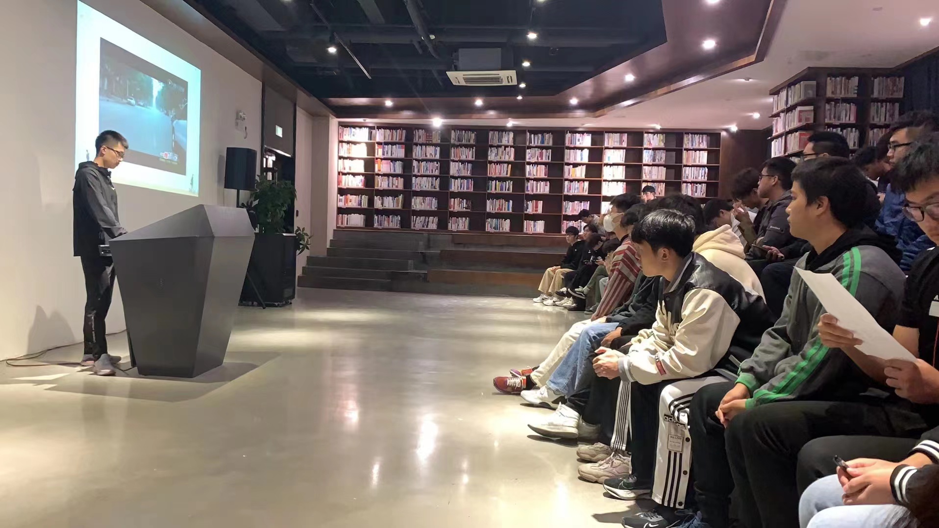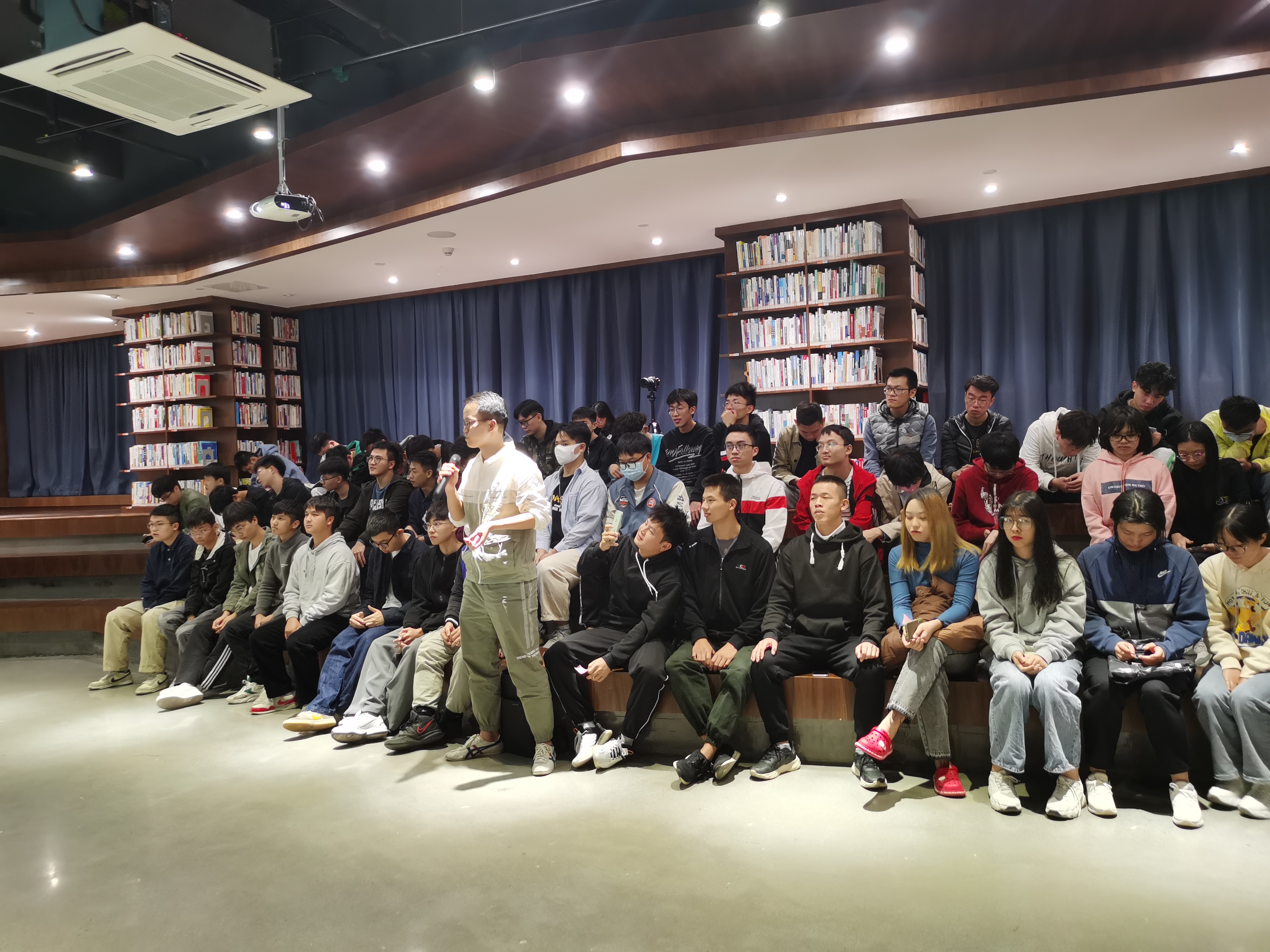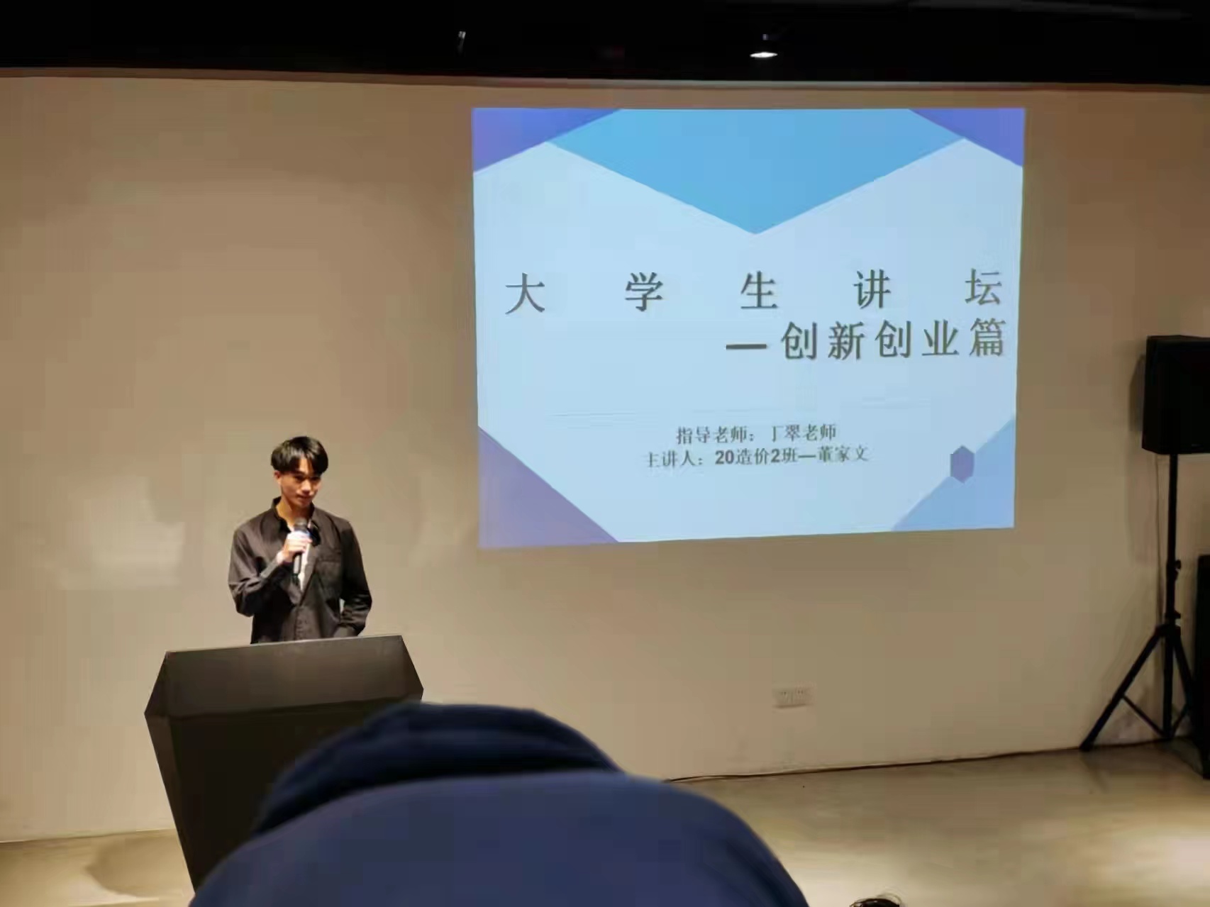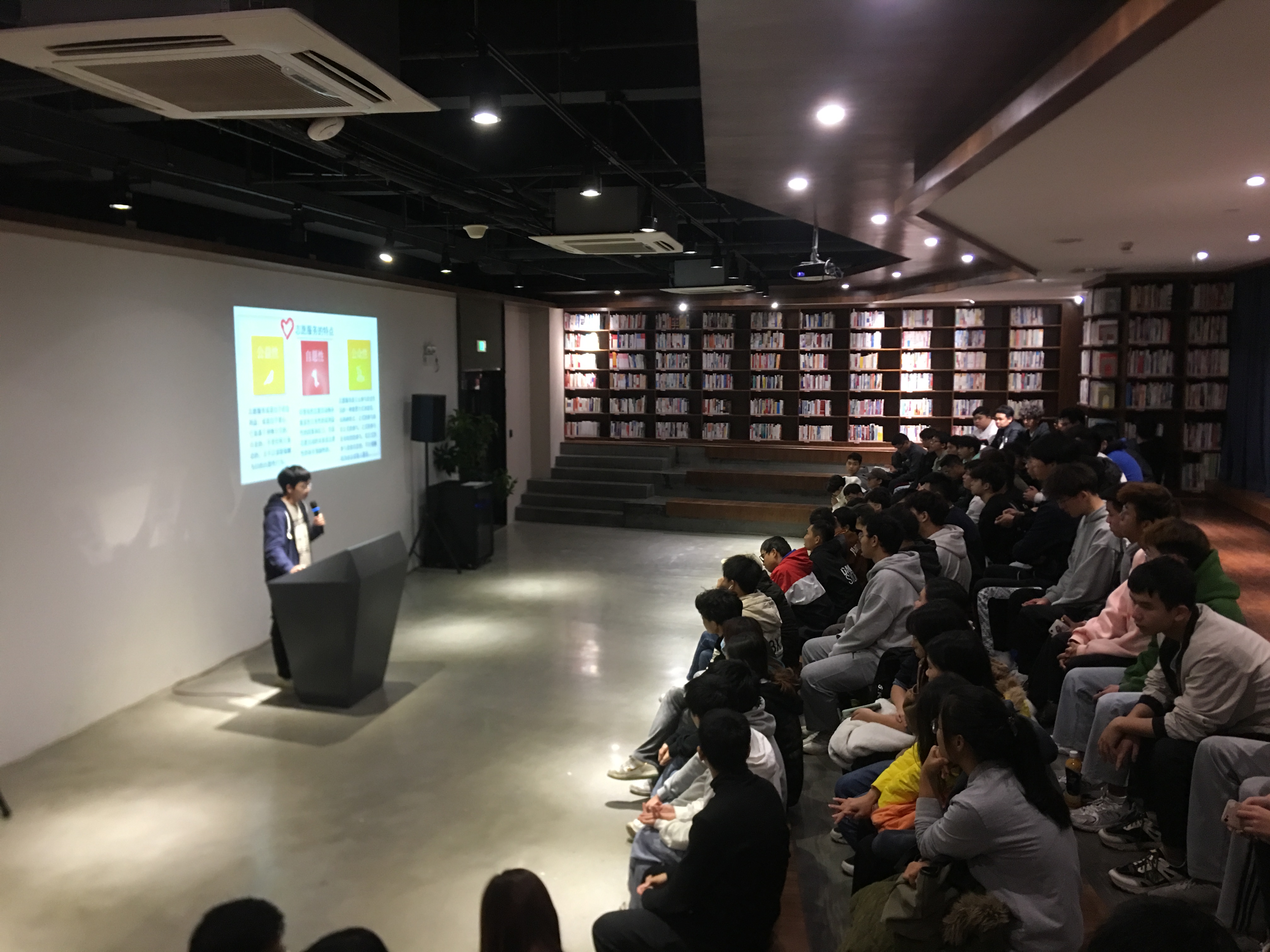 2021年11月22日晚,为响应学校的号召,积极发挥优秀青年的模范作用,建筑工程学院专场“大学生讲坛”第一讲,在图书馆新书发布厅进行。本次主讲人是来自20土木本科5班的杨俊同学,其演讲的主题是“奉献与快乐同在,你我与文明同行”。
