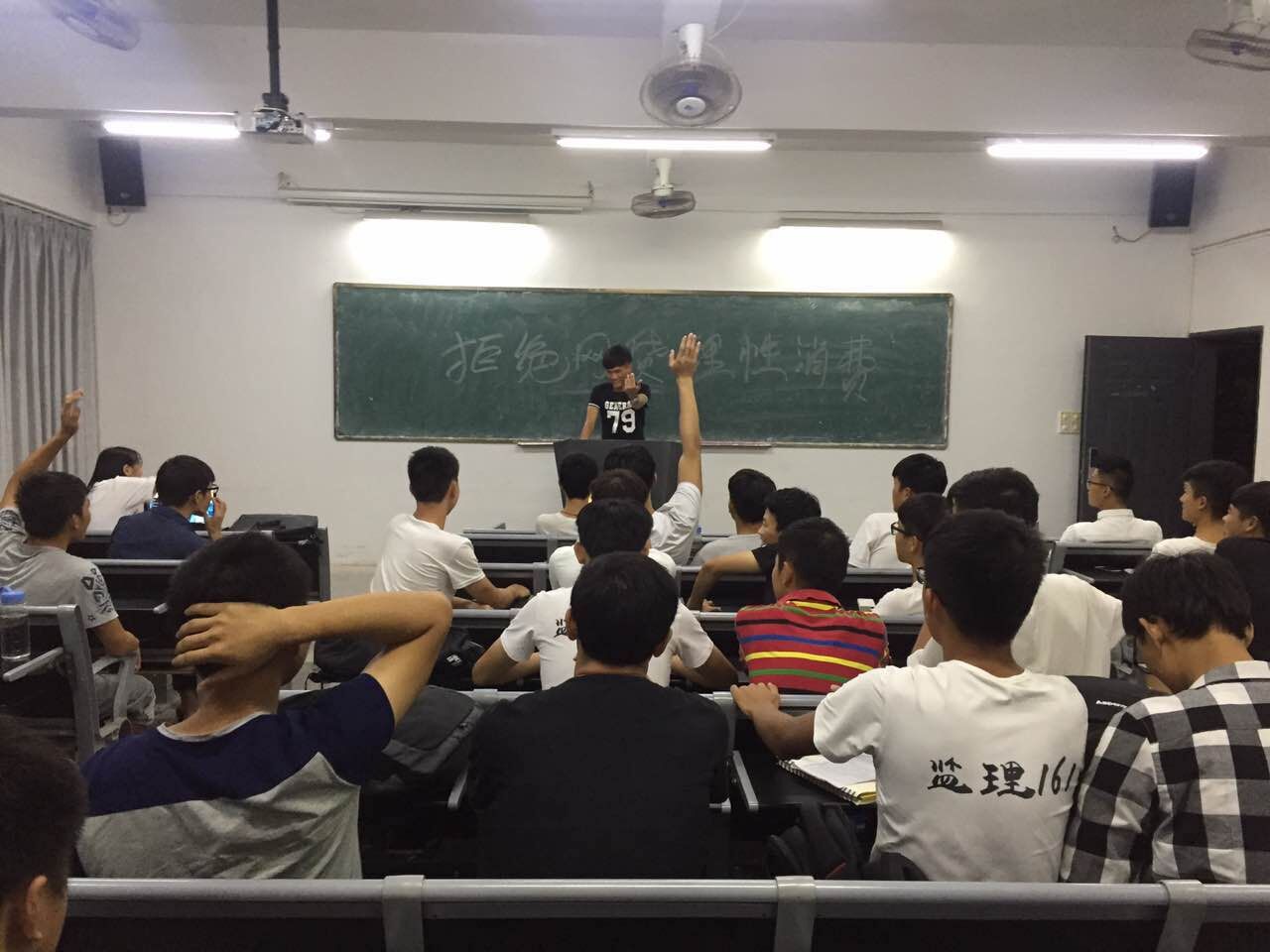 为了贯彻落实学院《广州科技职业技术学院关于开展校园网贷风险防范集中专项教育工作的通知》要求,树立我校学生的网贷安全意识,增强抵御不良网贷风险的能力。2016年11月22日晚,16级施工与监理1班在2209召开“拒绝网贷理性消费”为题的主题班会。