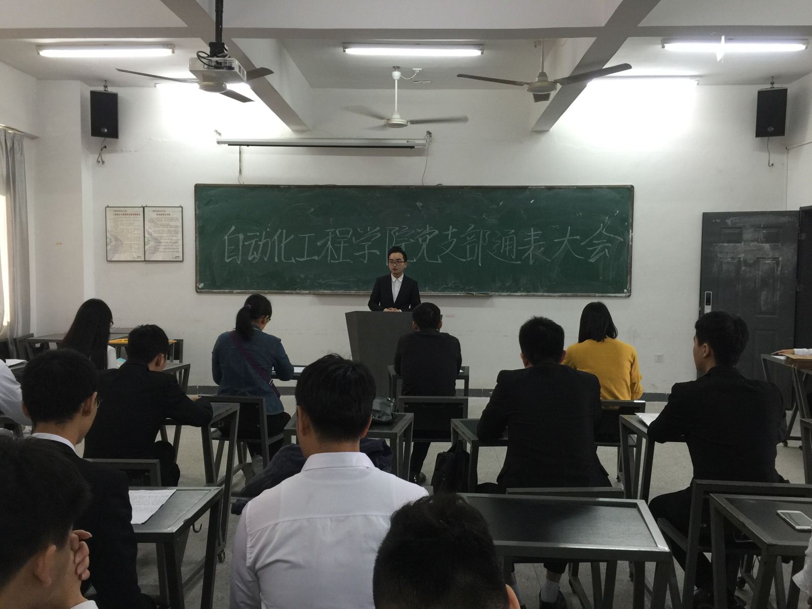 2016年12月7日下午,自动化工程学院在7411课室召开通表大会。与会人员有我院党总支书记吴超、教师党员黄雪梅、教师党员胡高英以及学生党员、预备党员、入党积极分子。