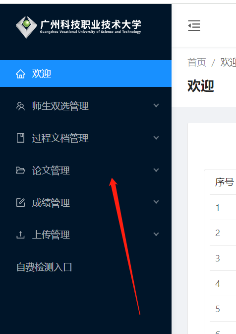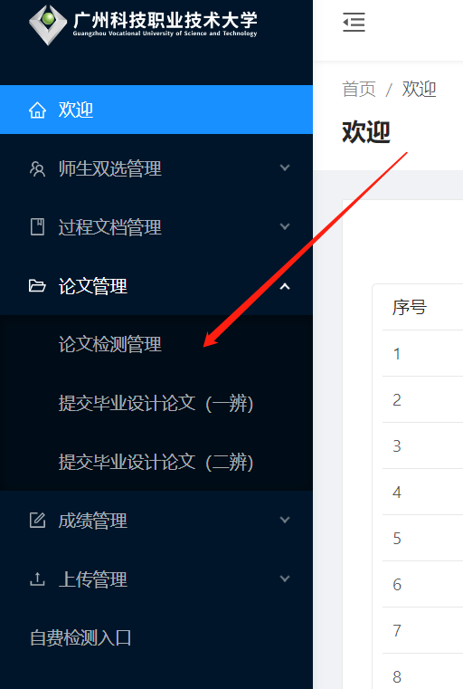 3.选择“论文管理”菜单下的“论文检测管理”子菜单。
