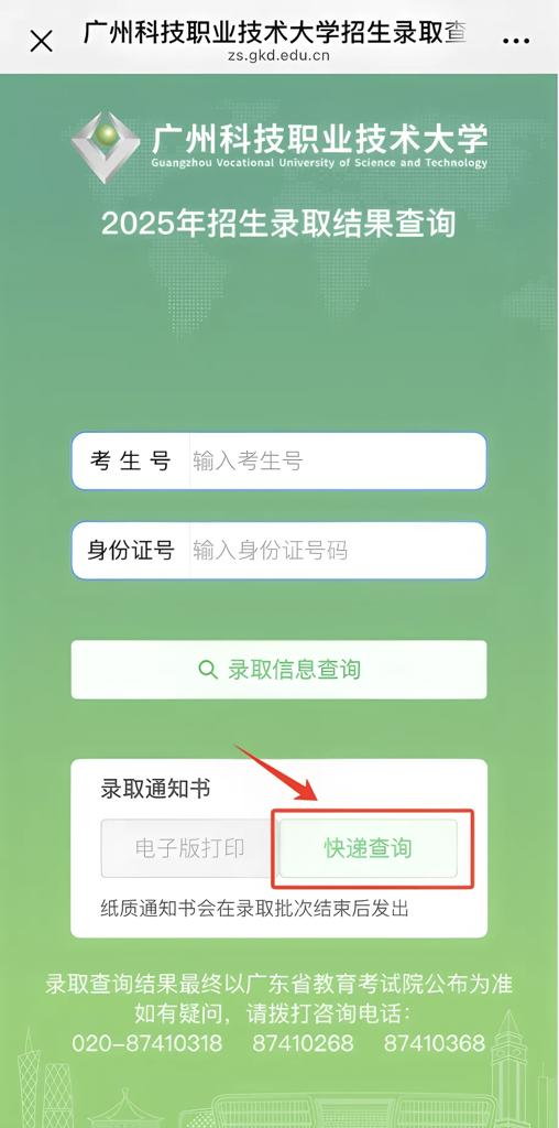 1.查询到录取结果,但查询界面未显示快递单号表示你的录取通知书还在打包准备中,请耐心等待。