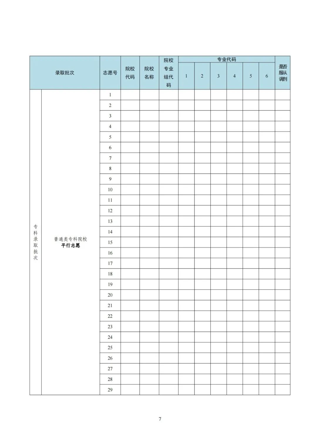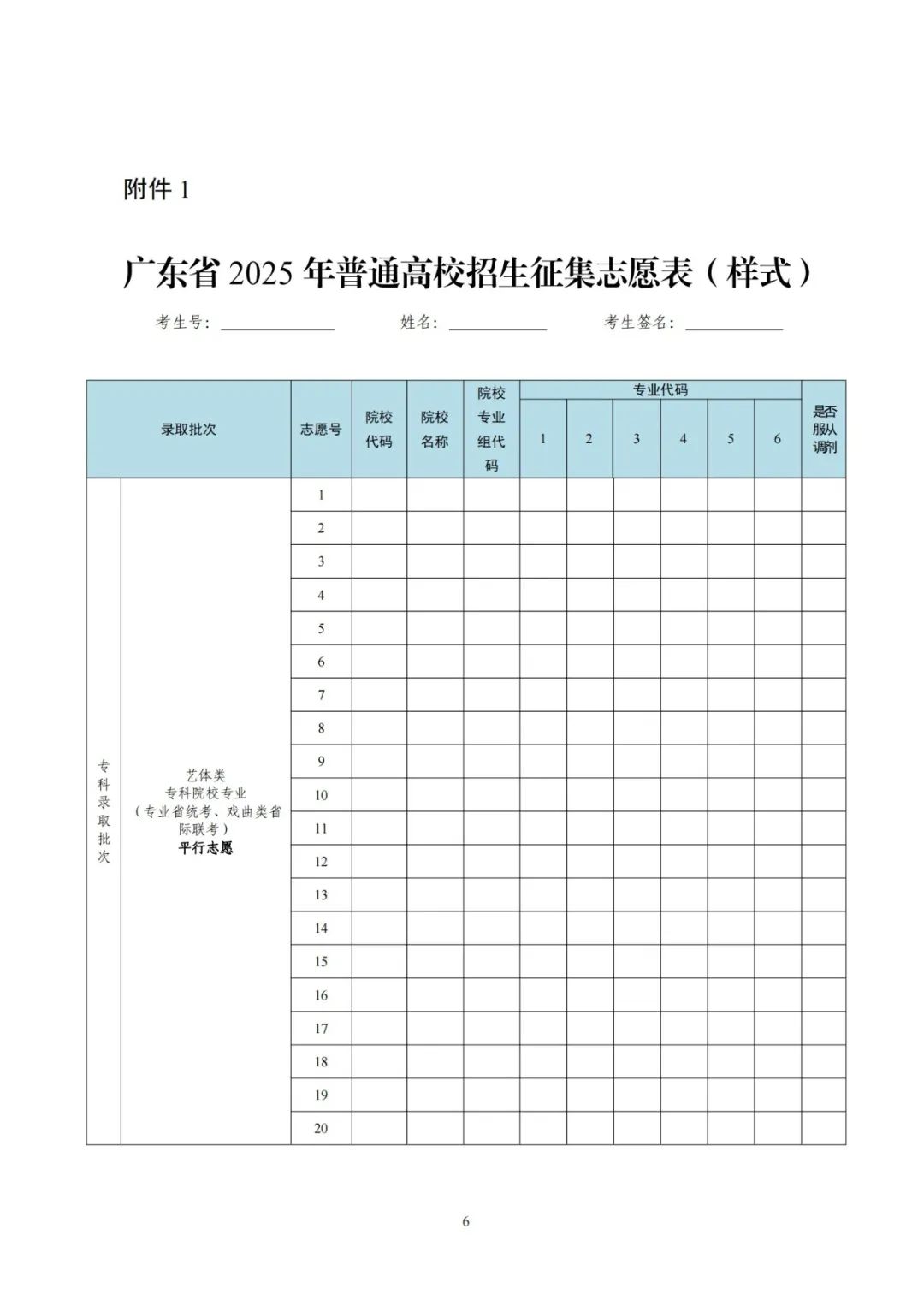 1.广东省2025年普通高校招生征集志愿表(样式)