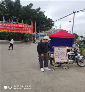 疫情面前,他是防疫知识的“宣传员”。他协助村委会做好防疫宣传工作,悬挂疫情防控横幅、张贴防控宣传海报,宣读科学防疫知识,叮嘱村民提高防控意识,要少出门、戴口罩、勤洗手、多通风等。