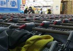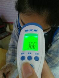 每天早晨,杨泳天步行到家附近的沃尔玛超市,到达后被同事监测体温,随后戴上两层一次性医用口罩、已被酒精消毒的护目镜、一次性头套、一次性手套等防护品,“全副武装”后开始一天的工作。她的第一项任务,是用稀释好的消毒水对收银台、扶梯扶手、储物柜、栏杆、自助收银一体机、购物篮和购物车等顾客可能接触到的一切设施进行消毒,保障顾客的使用安全。这样全面的消毒工作,她每天要做三次。第一次消毒工作完成后,顾客陆陆续续走进超市购物,杨泳天就站在超市门口,笑容满面迎接顾客:“您好,欢迎光临,给您测一下体温。”这句简单的话她记不清每天说了多少次,拿着红外线体温仪给顾客测体温的动作不知道重复了多少遍。偶尔会遇到急性子的顾客拒绝接受测体温,杨泳天总是不厌其烦地解释,最后顾客都能理解并配合工作,这让她感到欣慰。一天工作下来,杨泳天的耳后总被口罩绳和护目镜腿压得很疼,这让她体会到了一线医务人员工作的艰辛,毕竟她们还要全程穿着防护服工作。