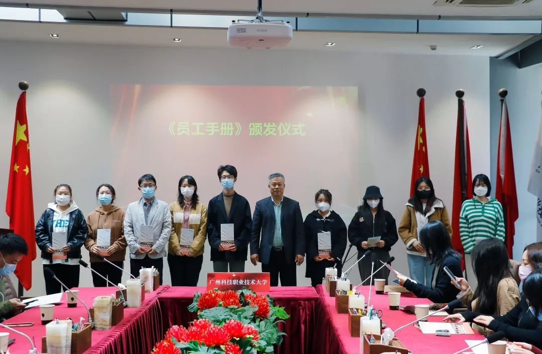 随后,校党委书记冯小宁为新教职工发放《员工手册》。手册涵盖学校规章制度、准则规范及综合服务等内容,是学校发展战略的浓缩,也是新教职工了解学校的重要途径,更是教职工日常工作规范、行为规范的指南。