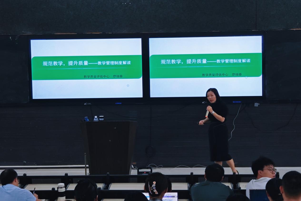 教学质量评估中心主任廖细春副教授作《规范教学,提升质量——教学管理制度解读》专题讲座