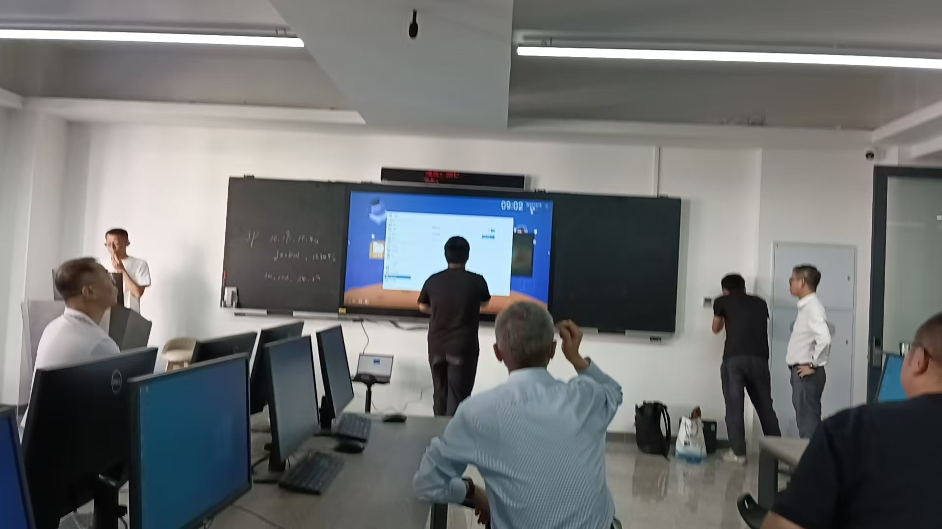 看完样板间,我们又移步到2312室,那里部署了相应的系统软件。通过现场的观摩,我们进一步了解了系统功能的强大,以及现场提出了一些合理化建议。最后,厂家根据校领导的意见,重新部署属于学校目前已有功能的平台演示,后期再通过实际操作来确认相关功能是否达到评估和督导查课的具体要求,让我们拭目以待吧。