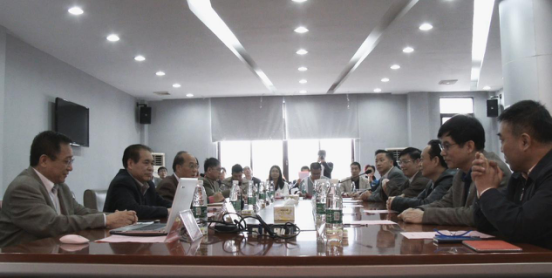 图为:我校行政楼四楼会议室双方交流座谈会