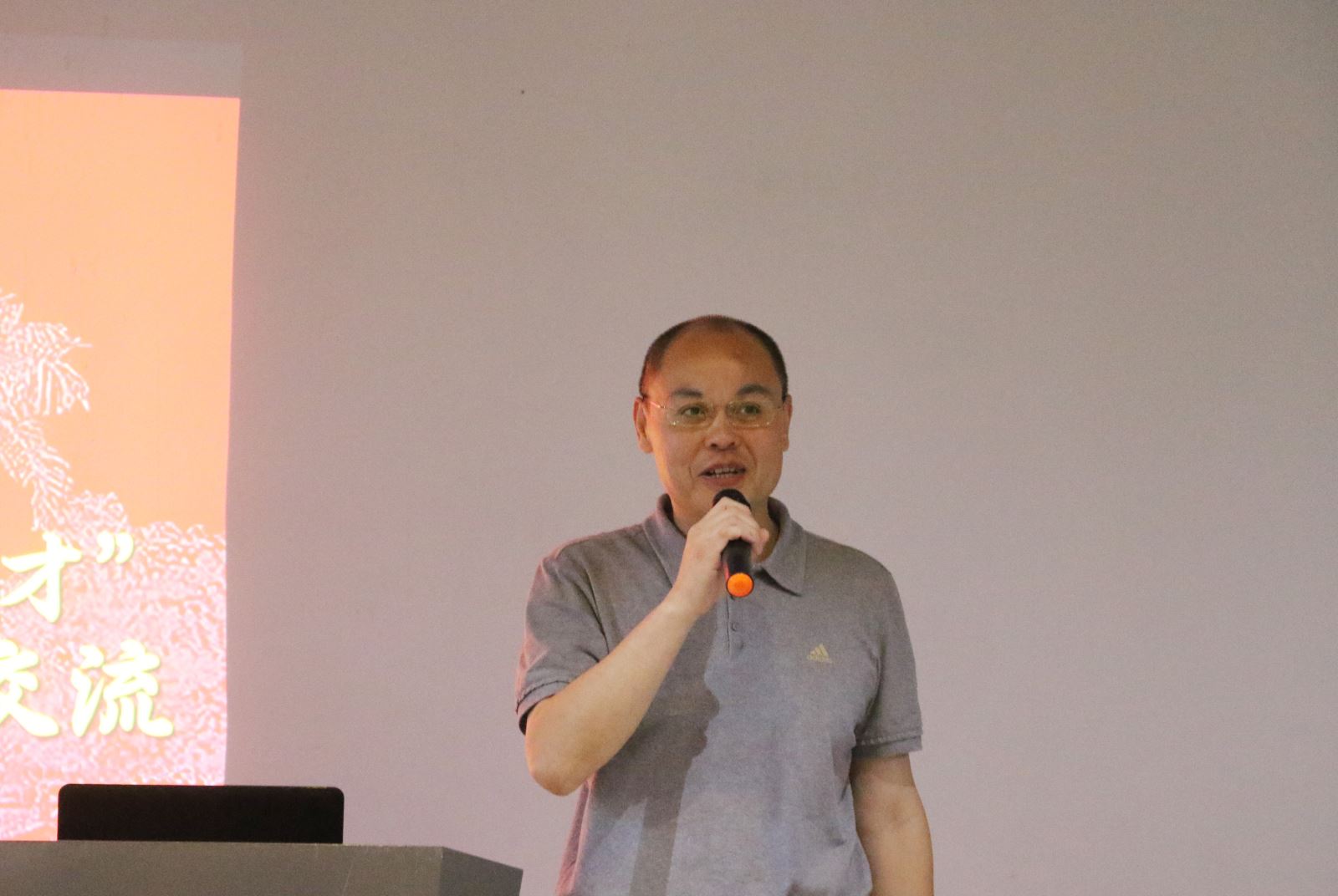 图为:我校信息工程学院院长陈政石介绍学校和学院发展概况