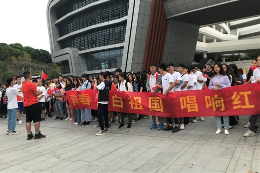 为进一步弘扬红色文化,增强广大党员和学生爱党爱国的责任意识,丰富党支部的学习教育活动形式,思政部党员教师组织学生开展了“青春告白祖国 唱红歌感党恩”主题教育活动。10月23日上午8:00,思政部全体党员带领19级新生1000多名学生在图书馆广场集聚一堂,引吭高歌,唱响了一首首耳熟能详、感人肺腑、催人奋进的红色经典歌曲,歌声在校园上空久久回荡,激起了在场师生对党和祖国的无限热爱,广大师生在轻松愉快的过程中汲取着丰富的政治营养,默默地接受着红色精神的洗礼。