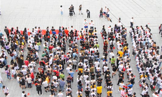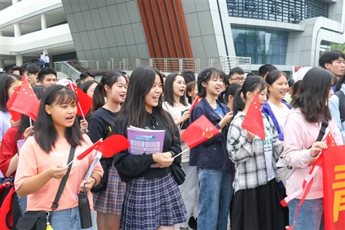 金秋的清晨,热情洋溢的老师和学生们早早地来的图书馆广场,他们手拿小红旗,精神抖擞地整齐列队、蓄势待发,准备大展歌喉,学校党委陈道华书记和思政部主任曾学龙教授、思政部党支部书记王润萍、教研室主任谢颖、董英华、王素芳等均出席了本次活动。