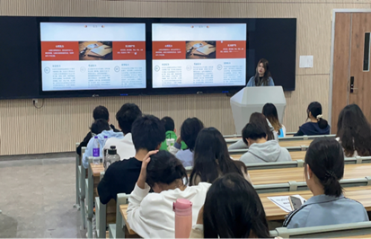 讲座开始,以压力作为切入点进行演讲,压力的意义是什么,压力给人带来了什么作用。压力是一把双刃剑,带来的正面影响和负面影响是互相制约的作用。赵钰沂同学在讲座提出如何自我调节的几个方法:一、学会自我控制,学做自己身体的主人,控制自我情绪。二、学会倾诉,敞开心扉,将积压的情绪释放。三、适当自我宣泄,学会使用不同的方式解压。四、转移注意力,转换心情,采用迂回方法。