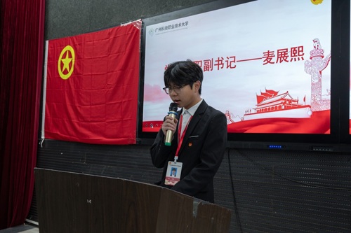 会议第一环节,校团委学生兼职副书记代表麦展熙同学进行了发言,对校团委上学年的工作进行了总结,动员校团委全体新成员,积极参与活动,勇于挑战自我。此外,麦同学也表示校团委将不断创新工作思路,丰富活动内容,努力成为连接学校与学生的桥梁,呼吁全体成员携手共创校团委更辉煌的篇章。