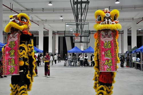 舞狮是我国优秀的民间艺术。每逢佳节或聚会庆典,铿锵有力、热闹非凡的锣鼓响起,一头头威风凛凛的狮子在会场上跳跃舞动。