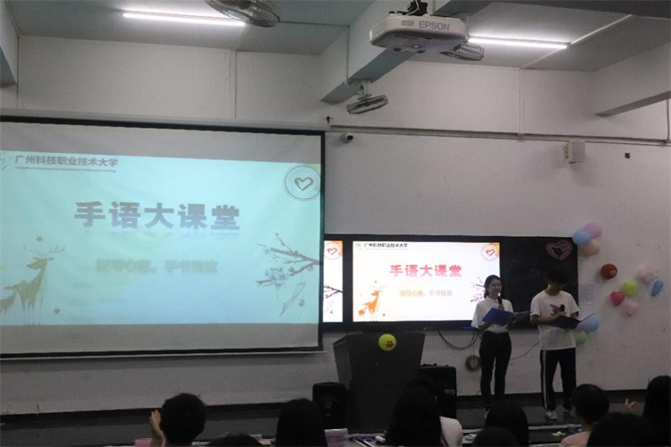 (本网讯)2021年4月24日,开元(ky)中国官方网站入口网页版青年志愿者协会举办“手语大课堂活动”。本次活动为旨在让更多人了解与学习手语,关爱与帮助更多有需要的聋哑人,开元(ky)中国官方网站入口网页版青年志愿者协会带领大家一起学习。19时30分于3201阶室教室举办一场意义非凡的手语大课堂活动,由手语队部员曾毅洋、黄晓婵梯担任主持人并且介绍参加本次活动的嘉宾,分别有:广东工贸职业技术学院青年志愿者协会,广东机电职业技术学院青年志愿者协会,广东青年职业学院青年志愿者协会,广东白云学院青年志愿者协会,团委代表苏景龙师兄,第三届手语队队长李新梅师姐、副队长李富城师兄,校团委代表校陈键好师姐,校学生会代表蔡仰师兄。