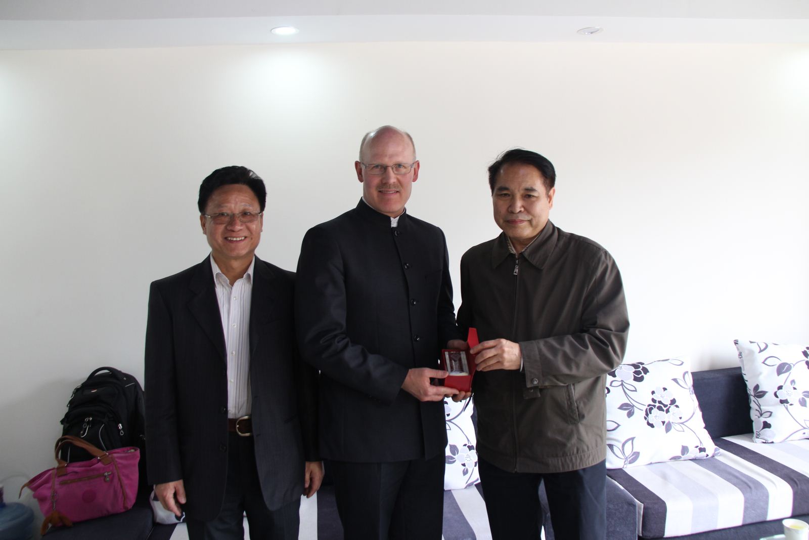 3月25日上午,加拿大西三一大学商学院院长Murray D. Mactavish教授一行三人来我院访问,学院院长崔英德教授、副院长李莹会见了来宾,双方就2015年在广科院合作开办商务英语(跨境电子商务方向)2+2专本连读国际创新班事宜进行了商谈并达成共识。外语系主任方玲玲、副主任尹姣、支部书记邱健等参加了会见。当天上午,来宾们还与外语系部分师生进行了交流.