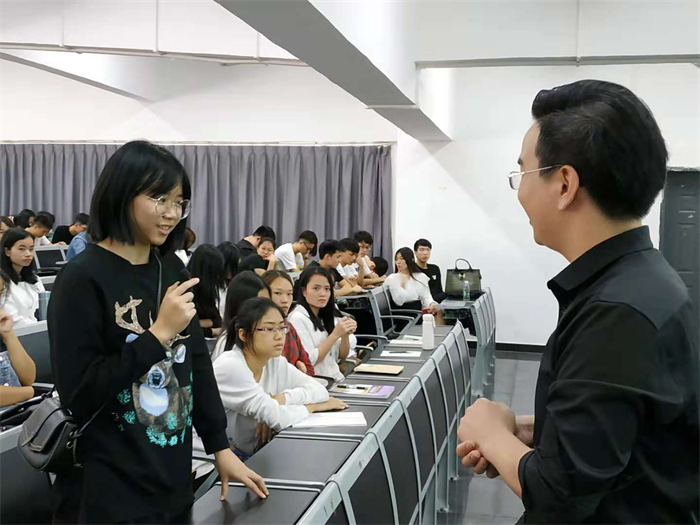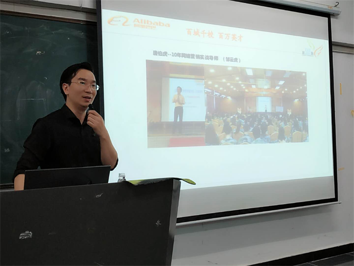 唐伯虎先生是阿里巴巴和中国国际电子商务中心特邀讲师,具有10年的网络营销实战经验,精通跨境电商平台的运营和推广。会上,唐总以真实的数据就当前跨境电商行业发展的趋势进行了解析,讲述了跨境电商行业带来的机遇和挑战,并通过真实的创业案例分享,给同学们提出了非常中肯的就业和创业建议。同学们均表现出浓厚的兴趣,并积极发言,现场气氛非常热烈。